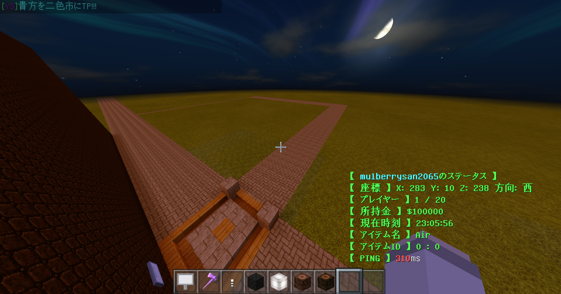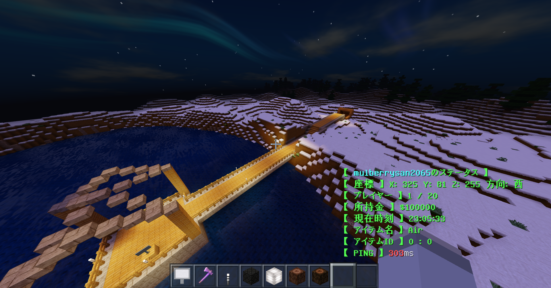 ここは自然資源です。バニラワールドと同じですが、仕事に就いてればお金を稼ぐことも出来ます。また、ただの石を掘るとランダムで鉄などの鉱石が出ます。